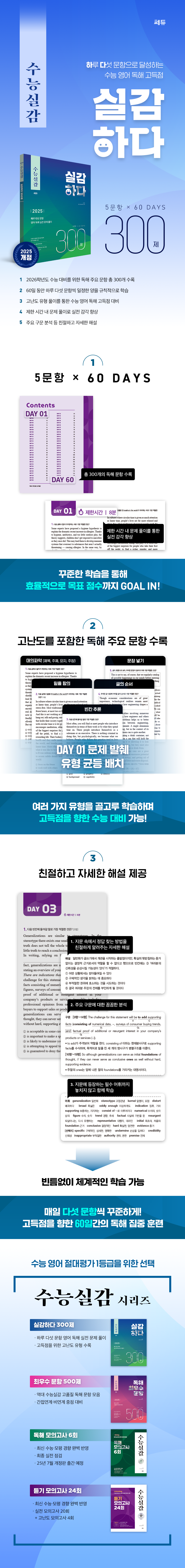 <실감하다300제>는 수능 영어 독해 문제 대비가 필요한 수험생들을위한 학습서이다.