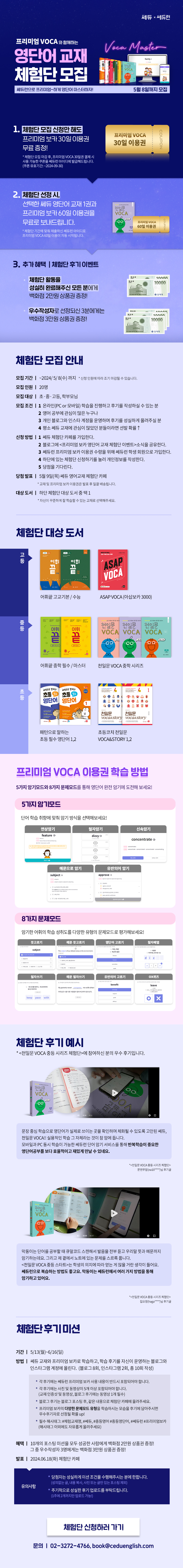 체험단 카페에서 프리미엄 보카 쎄듀 영단어 교재 체험단을 모집하고 있습니다.