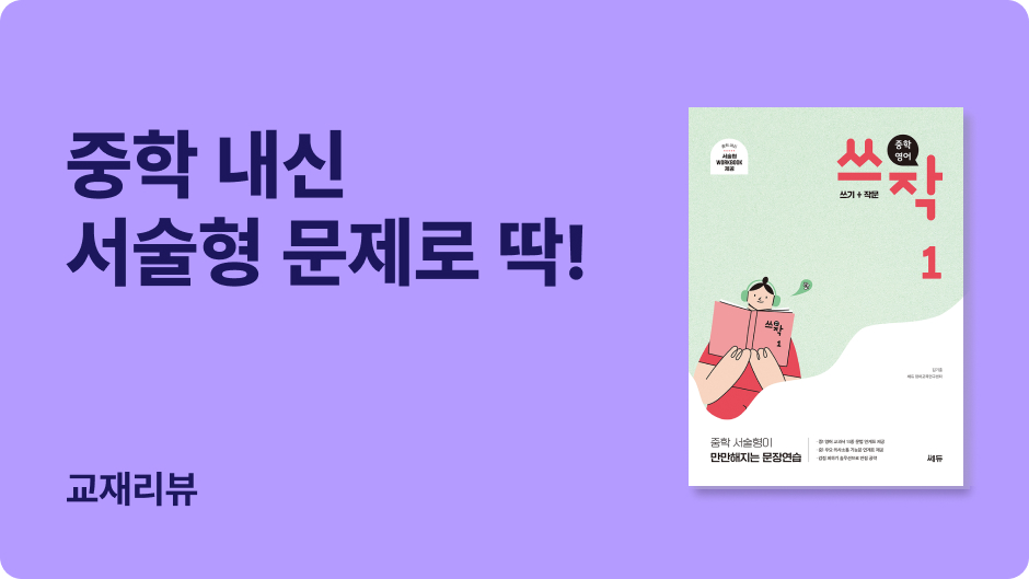 서술형 문제가 관건인 중학 내신, <쓰작>을 통해 문장 구조를 파악하고 문법 지식과 어휘로 문장을 완성하는 방법을 터득한다면 여러분의 서술형 고민은 곧 사라지게 될 것입니다.