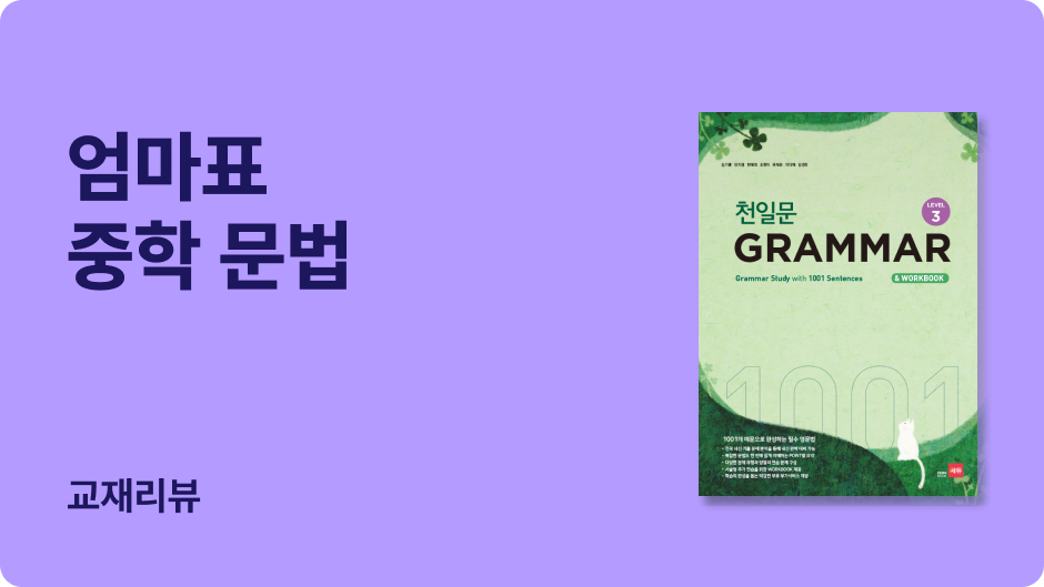 엄선된 예문과 전국 중학교 내신을 꼼꼼히 분석한 양질의 문제를 통해 완성하는 중등 영문법의 기초, <천일문 GRAMMAR> 시리즈로 시작해보세요!