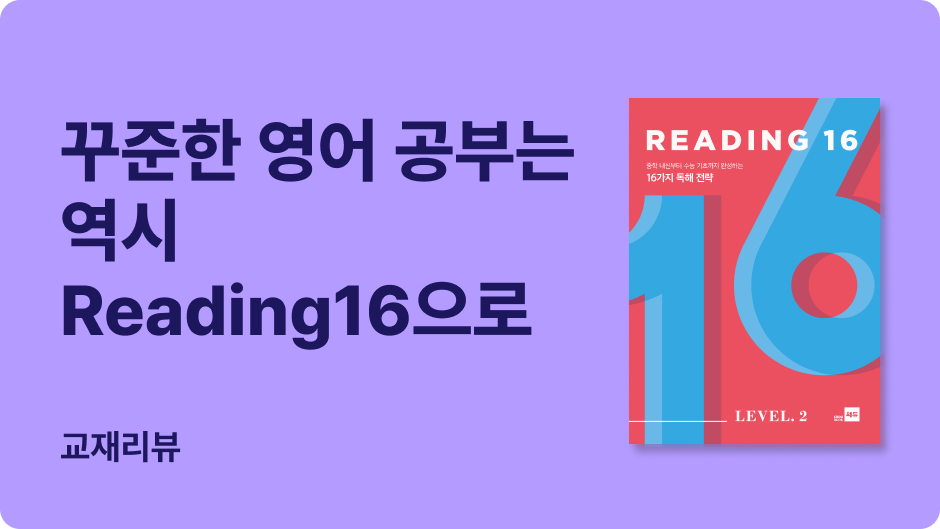『READING 16』은 3개의 레벨로 구성된 중학 영어 독해 전문 교재이다. 중학 내신과 수능 기초까지 완벽하게 대비할 수 있도록 모든 유형을 16개로 정리하였다.