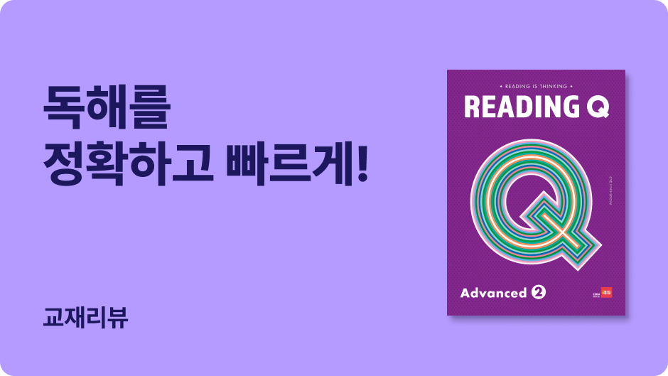 READING Q의 목표는 글의 흐름을 파악하고, 예측하는 연습을 통해 사고력 향상 문제들을 해결하도록 전략적으로 학습하는 것이다. 독해력이 부족한 수험생들과 내신과 수능에서 독해 고득점을 받고 싶은 수험생들에게 꼭 필요한 교재로, ‘독해 사고력을 키워주는 READING Q’를 강력히 추천한다.