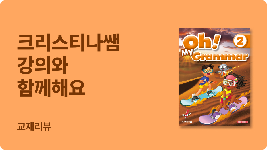 오! 마이 그래머는 초등 학습자들의 눈높이에 맞춘 흥미로운 주제를 통해 문법 개념을 배우기 때문에 문법을 처음 접하는 아이들에게도 부담이 없는 교재에요.