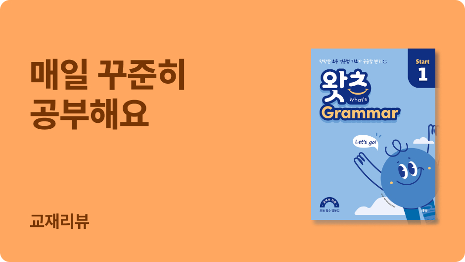 What’s Grammar Start1, 2, 3권으로 초등 기초 영문법 개념을 익힌 후, 후속편인 What’s Grammar Plus 1, 2, 3권으로 학습하여 초등 영문법을 완벽하게 완성하길 강력 추천합니다!