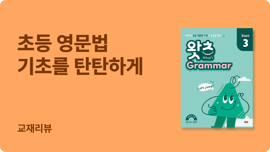 쎄듀 “What’s Grammar 왓츠 그래머”는 영문법을 처음 접하는 초등학생들을 대상으로 기획되어 Start 1,2,3권과 Plus 1,2,3권(총 6권)으로 구성되어 있어요.