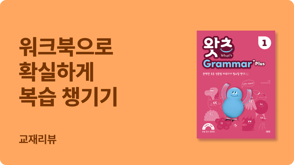 What’s Grammar Start 1, 2, 3권으로 초등 기초 영문법 개념을 익혔다면, 후속편인 What’s Grammar Plus 1, 2, 3권으로 초등 영문법을 완벽하게 완성하길 강력 추천합니다!