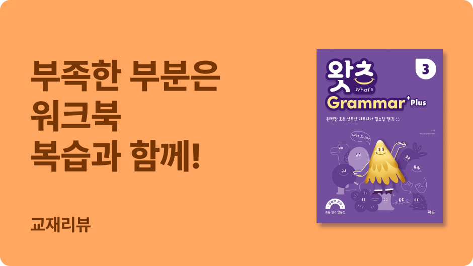 What’s Grammar Start 1, 2, 3권으로 초등 기초 영문법 개념을 익혔다면, 후속편인 What’s Grammar Plus 1, 2, 3권으로 초등 영문법을 완벽하게 완성하길 강력 추천합니다!