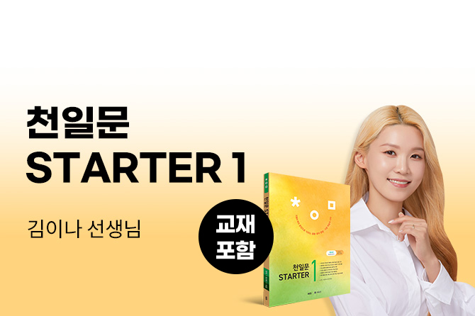 천일문 STARTER를통해 구문 학습을 처음 접하는 학습자들의 첫걸음이 가벼워지기를 희망하며, 이 교재를 통해 더 많은 학습자들이영어를 영어답게 학습할 수 있기를 희망한다.
