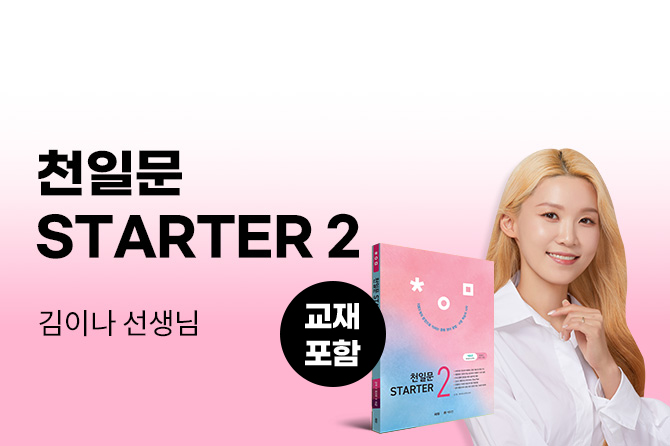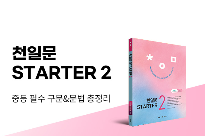 천일문 STARTER를통해 구문 학습을 처음 접하는 학습자들의 첫걸음이 가벼워지기를 희망하며, 이 교재를 통해 더 많은 학습자들이영어를 영어답게 학습할 수 있기를 희망한다.