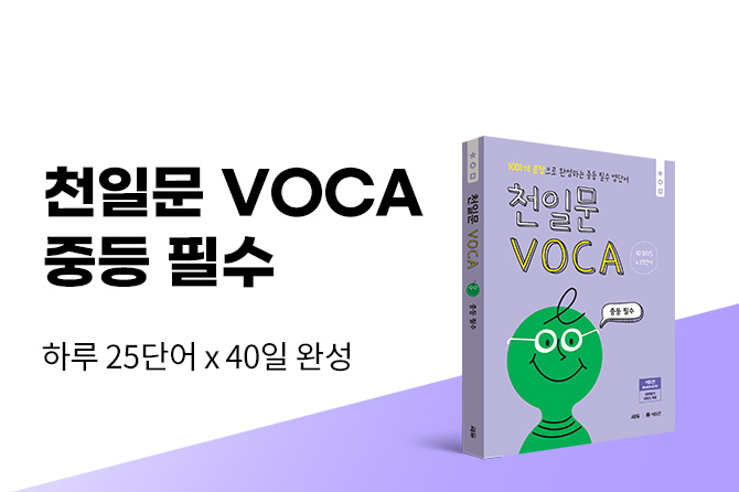 어휘력은 단순 암기가 아니라 반복 노출 또는 꾸준한 적용 훈련으로 쌓을 수 있는 것이다. <천일문 VOCA> 시리즈의 문장 중심의 학습을 통해 중등 어휘 학습에 발걸음을 내딛는 학습자들의 첫걸음이 가벼워지기를 바란다.