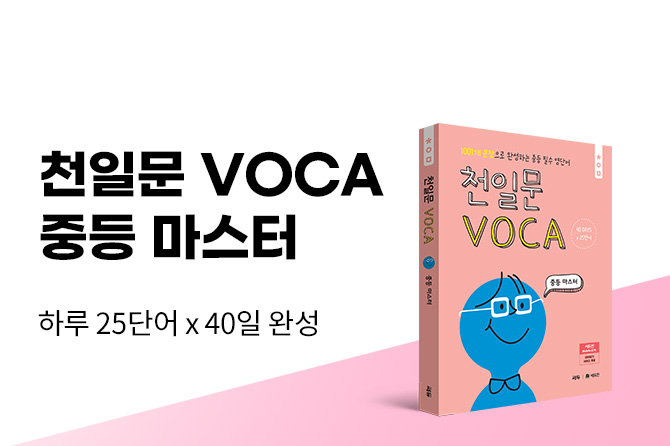어휘력은단순 암기가 아니라 반복 노출 또는 꾸준한 적용 훈련으로 쌓을 수 있는 것이다. <천일문 VOCA> 시리즈의 문장 중심의 학습을 통해 중등 어휘 학습에 발걸음을 내딛는 학습자들의 첫걸음이 가벼워지기를바란다.